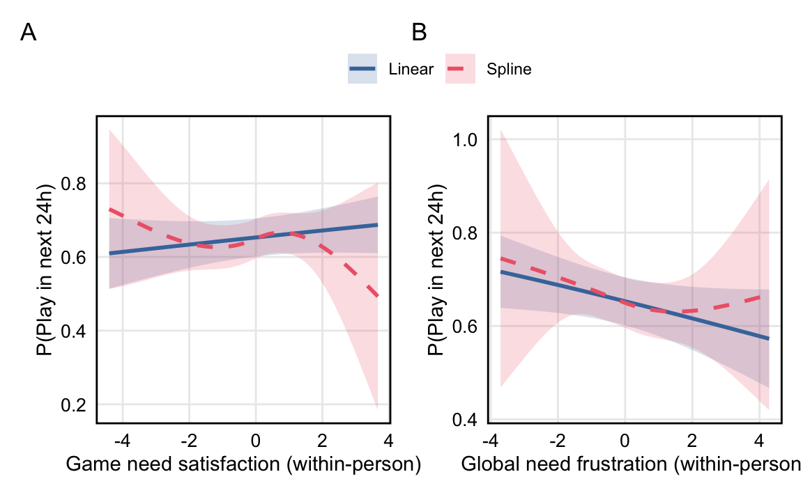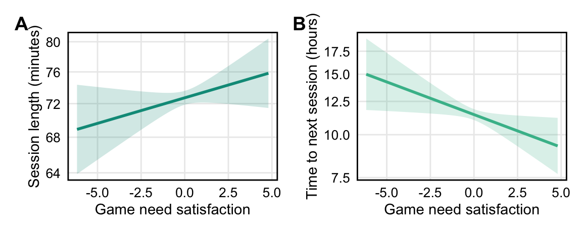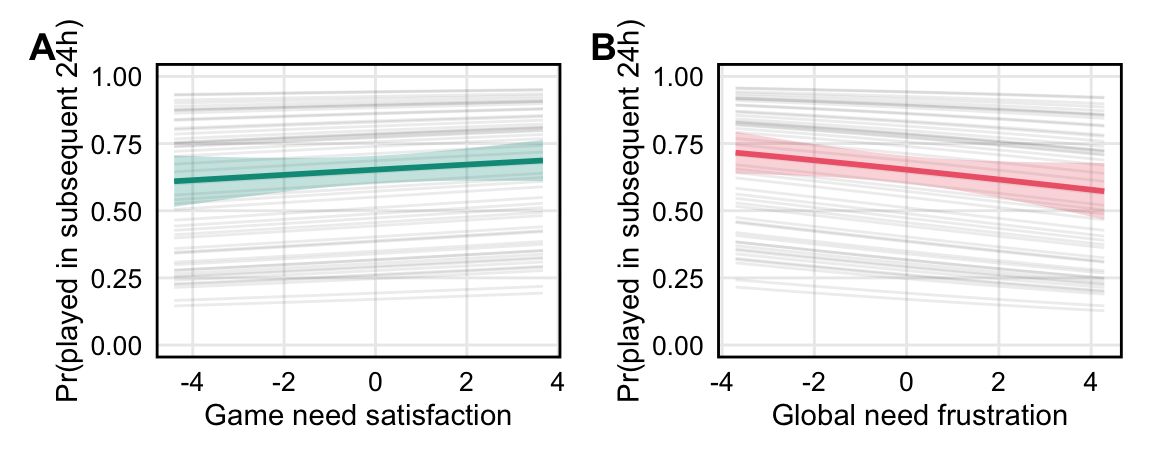 Results show that when people experience higher than usual in-game need frustration, they are less likely to play on the following day, but that this relationship is small. Nonetheless, in contrast to the robust null results for game need satisfaction across various specifications, this provides some initial evidence that need frustration may be more salient for day-to-day change in gaming behavior than need satisfaction.